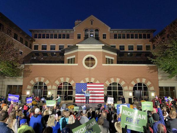 Grand Valley Lanthorn • 7th November 2022 Local, state, national Dems rally at Pew Campus ahead of Election Day Local and statewide Democratic candidates and their supporters converged on Grand Valley State University’s Pew Campus in downtown Grand Rapids on Nov. 6 in an effort to encourage voter turnout and energize a key voting base in the state ahead of the Nov. 8 midterm elections.